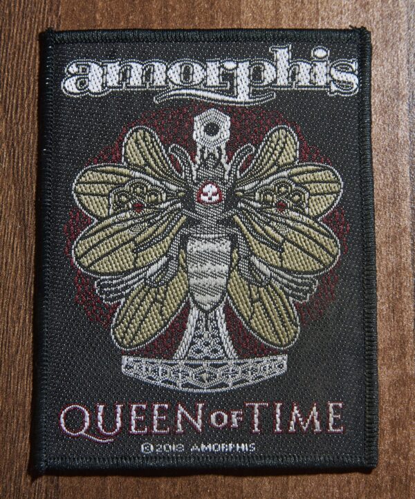 An official licensed polyester Standard Patch featuring the Amorphis ‘Queen of Time’ design motif.